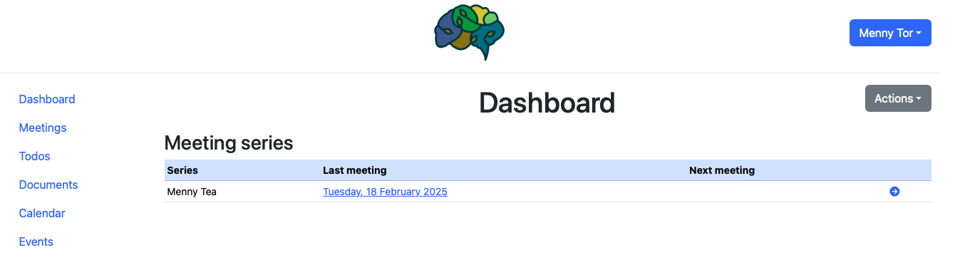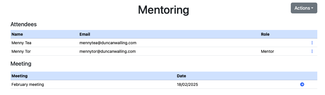 To add a new meeting click the arrow from the table above so you are taking to the page for the meeting series with your mentee. You should then see the list of meetings and details for you and your mentee.