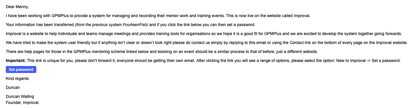 You should have received an email that looks like the screenshot below. If not please contact the GPMPlus office or Contact us